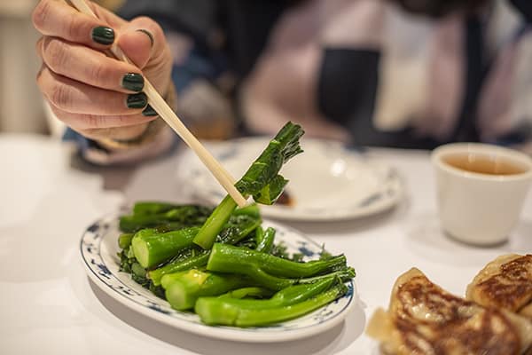 There were probably 20 of us and it was so much fun picking out our dishes right from the push carts that rolled alongside our table. Don’t miss the Chinese broccoli – it’s one of my favorite dishes to this day.