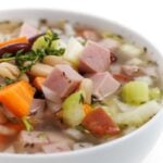 An easy slow cooker dinner recipe for using up leftover ham, this comforting and flavorful ham and bean soup recipe is full of hearty vegetables and smoky aromas.