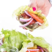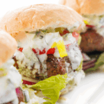 Greek-style turkey burgers are grilled to perfection and topped with a creamy garlic and dill tzatziki sauce. Protein packed and exploding with flavor, these Greek burgers are a healthy addition to any BBQ.