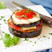 A healthy, fresh spin on the Italian food classic, you’re going to love this hearty and delicious grilled eggplant Parmesan. The ultimate vegetarian comfort food recipe!