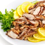 Sheet pan Lebanese shish tawook chicken is marinated in lemon and garlic then baked in the oven until golden brown. This recipe is ideal for salads, pitas, rice and more.