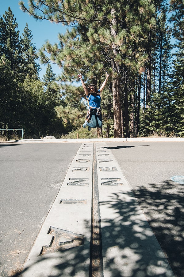 Last but not least, you can’t visit South Lake Tahoe without taking a photo at the California-Nevada state line! Let’s be real, this was the coolest photo I showed my seven year old when I got back. How often do you get to jump in between two states? Not every day, that’s for sure.