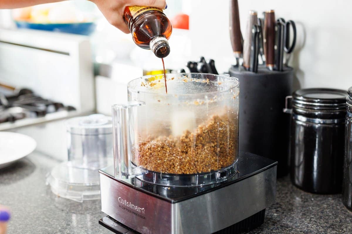 Step 4. Once the figs and walnuts have started to break down, add in the flax seed meal, salt, and vanilla extract. If you like things sweeter, you can also add in a hint of honey or maple syrup.