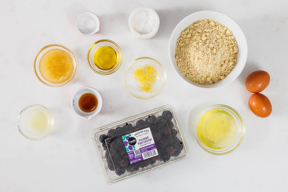 - Lemon: Lemon juice and lemon zest add bright, acidic flavor that pairs well with the blackberries and cuts through some of the sweetness.