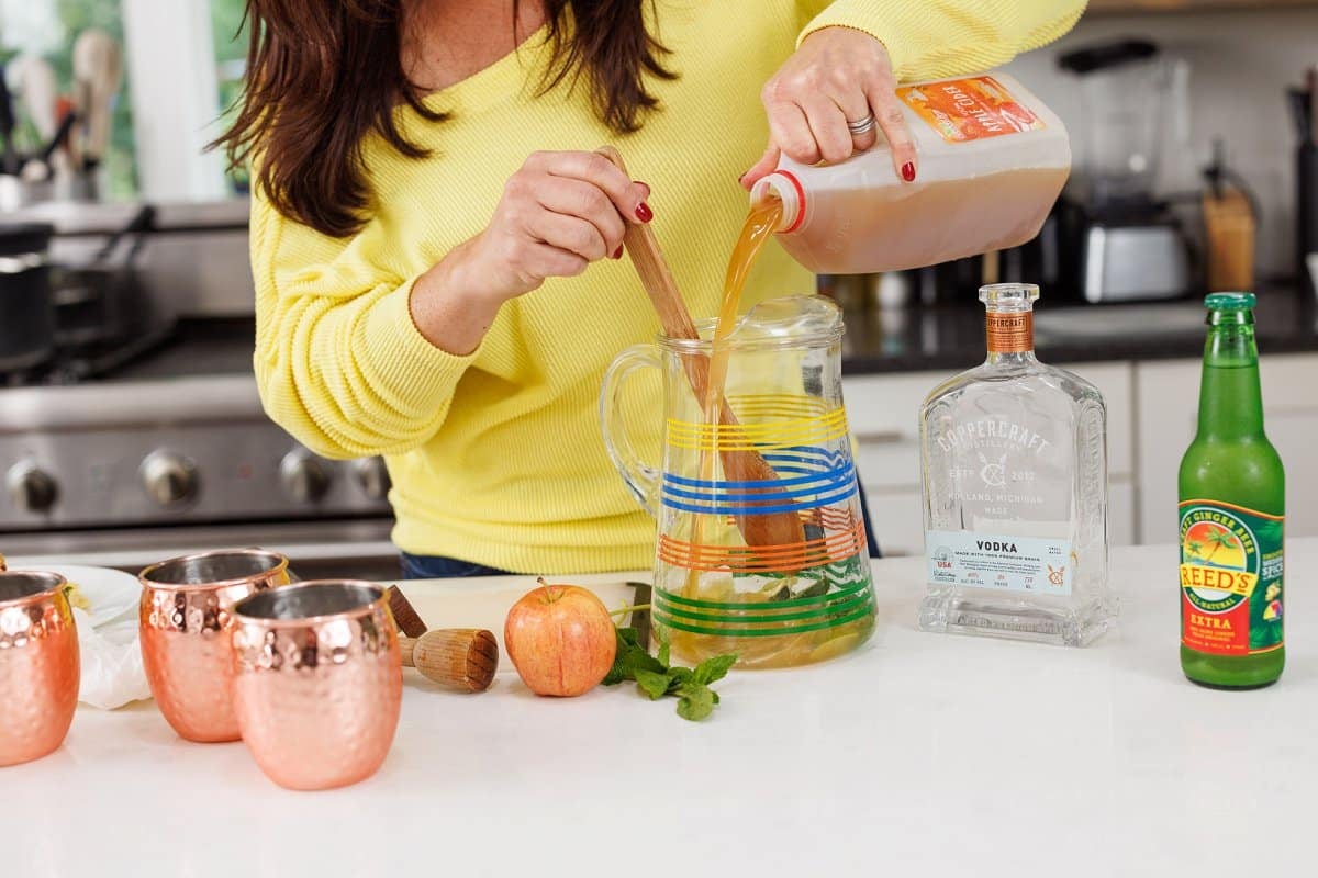 At the end of a long day, it’s nice to relax with a refreshing cocktail. A classic Moscow Mule includes vodka, lime juice, and ginger beer. But as the seasons starts to turn, I put a delicious, fall twist on the traditional cocktail with my Apple Cider Moscow Mules.