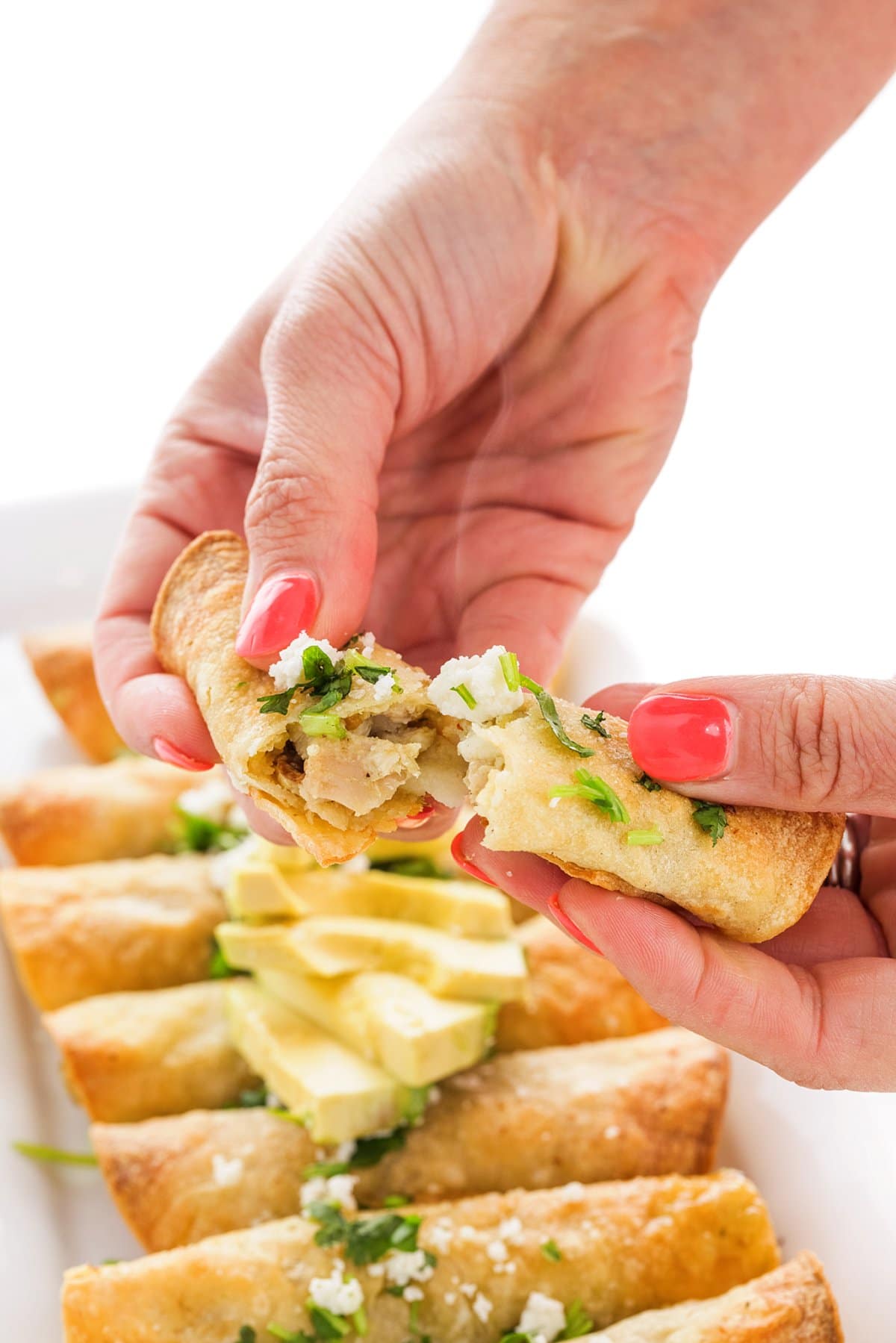 A healthy spin-off of the Tex-Mex classic, these baked chicken taquitos are not fried! Packed with juicy chicken and topped with cotija cheese, these hand-held taquitos are crunchy, crispy, and oh-so-delicious.