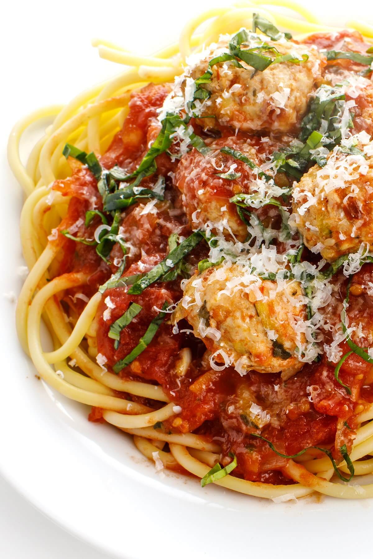 These juicy Baked Turkey Zucchini Meatballs are made with grated zucchini to create perfectly tender meatballs with an extra boost of fiber. Perfect for an easy weeknight dinner!