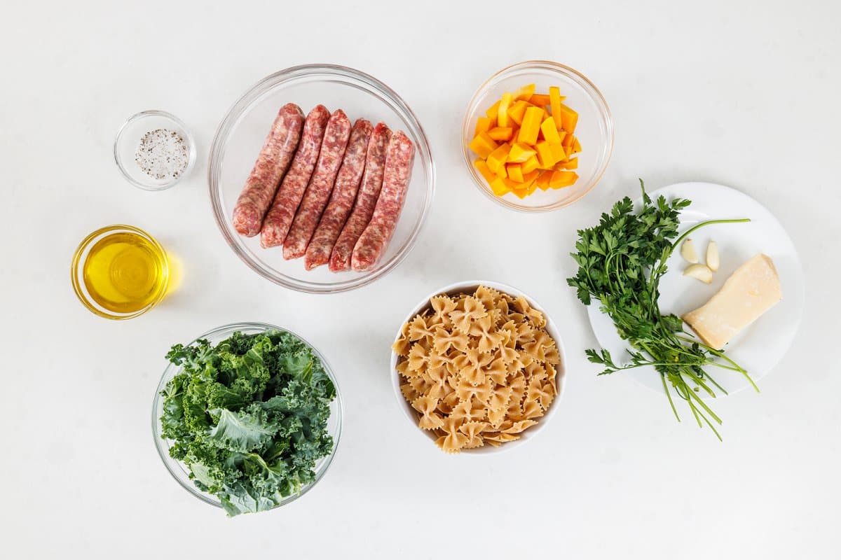- Pasta: I prefer to use a smaller pasta like farfalle, orechiette, or penne for this dish as it coats well in the sauce and makes for easy bites with all the flavors.