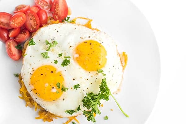 - While the butternut squash and onions are cooking, fry (or scramble!) your eggs to desired level of doneness. Serve butternut squash hash browns hot with fried eggs on top.