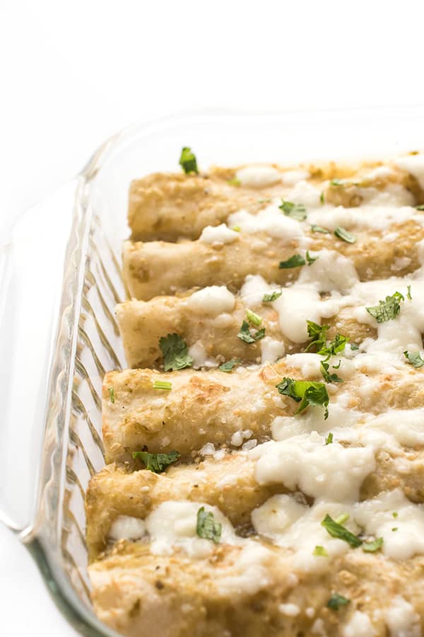 For most of my life I always assumed enchiladas were out of the question when it came to healthy eating. The rich and heavy Tex-Mex version that I’d often find in restaurants was always super heavy and coated in way too much cheese and sour cream.
