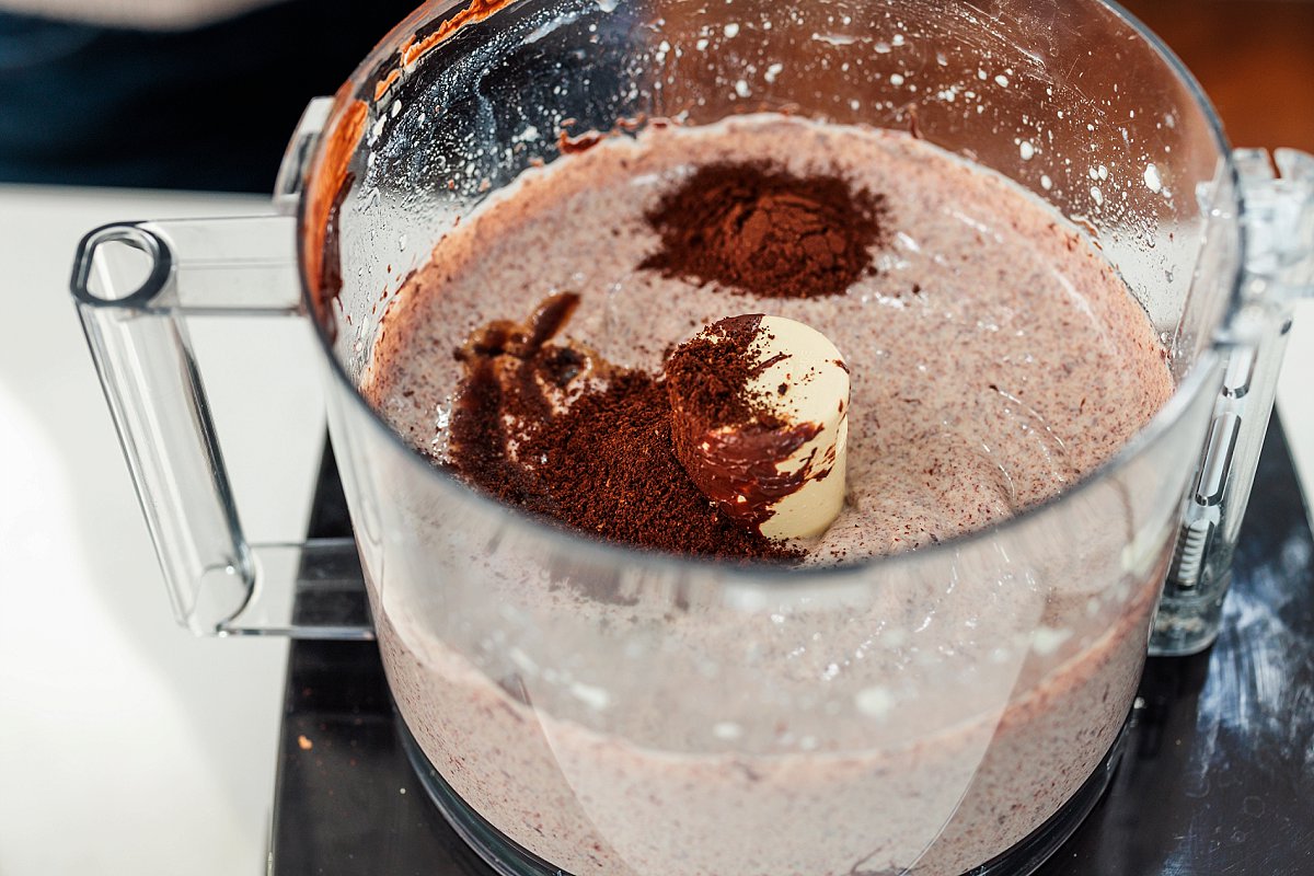 - Stir the vanilla extract, espresso powder and salt into the melted chocolate until combined. Add chocolate mixture to the tofu in the food processor and pulse until smooth and creamy.