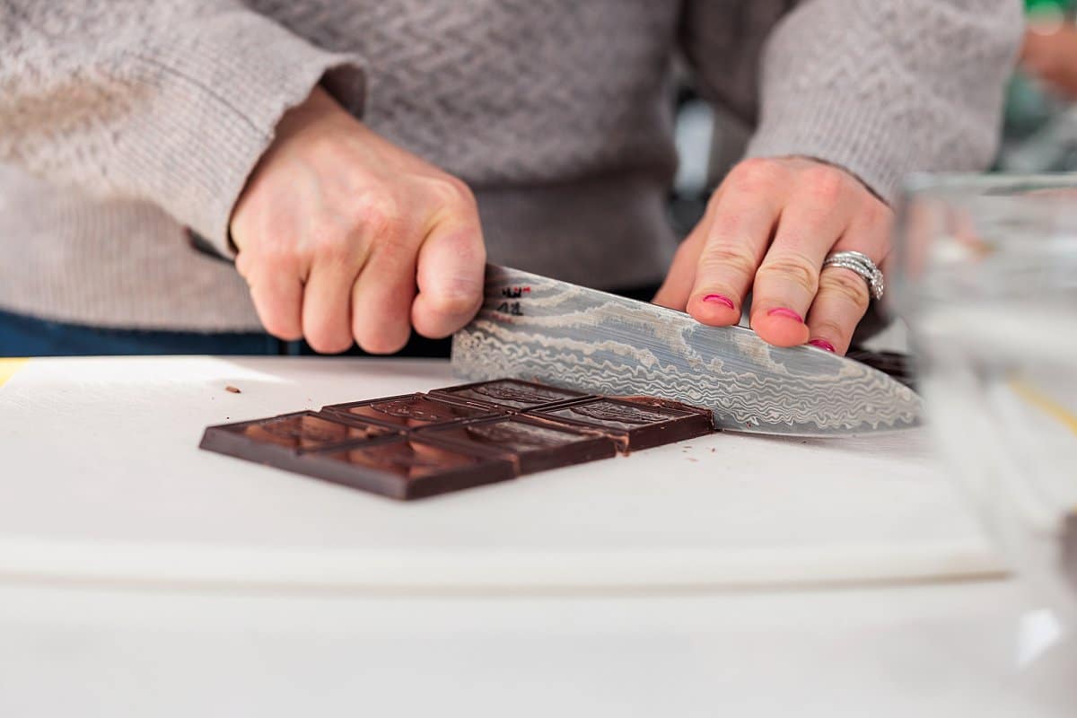 Start your Chocolate Truffles with Sea Salt by prepping the chocolate. If you’re using bars, chop it into smaller pieces.