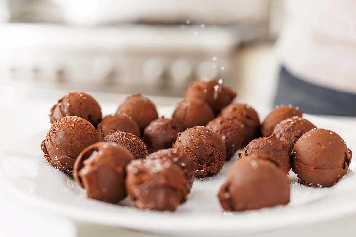 - Once truffles are formed, sprinkle lightly with sea salt.