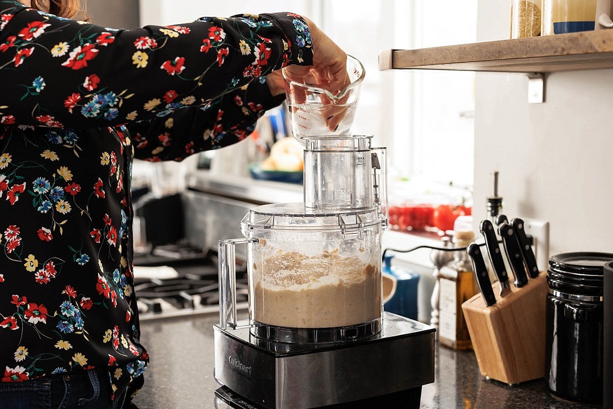 Last you’ll add the ice water, and puree until smooth, adding more water if you want a thinner consistency.