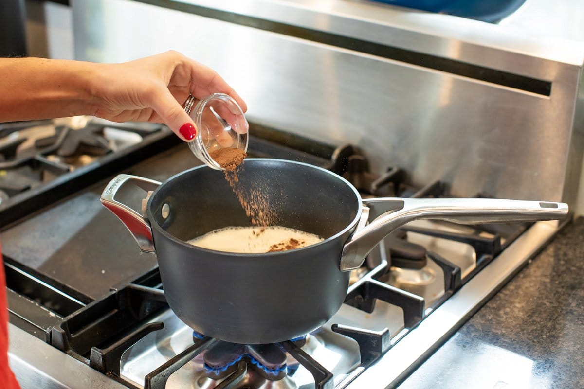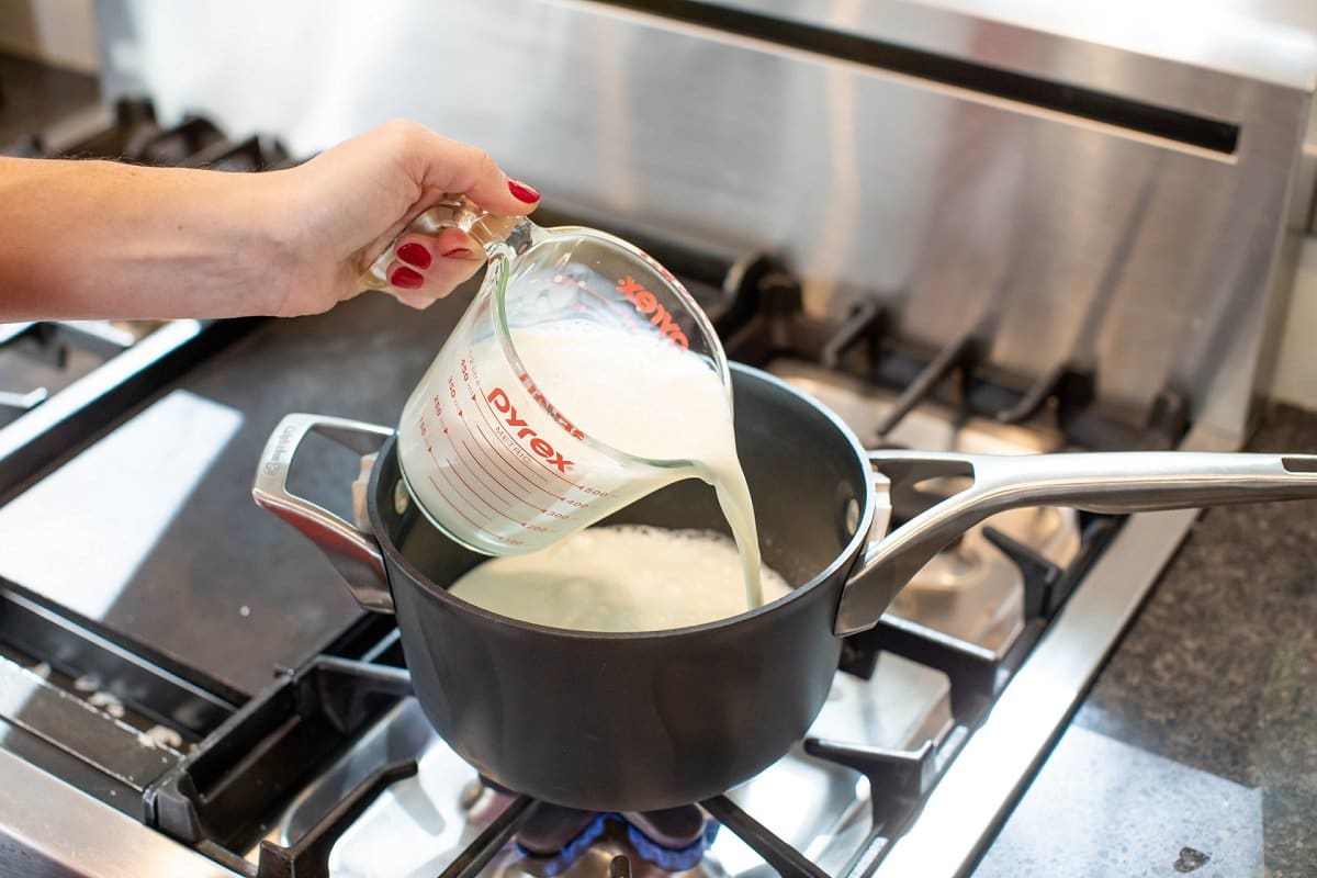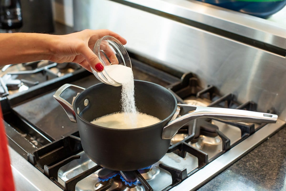 - Add milk to a large saucepot and whisk in cinnamon, salt and sugar until thoroughly combined. Bring milk to a gentle boil over medium heat, whisking occasionally. Keep a close eye being careful not to scorch the milk.