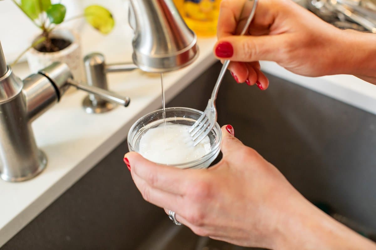 - Using a fork, mix cornstarch with a few tablespoons of cold water then add to the pot. Continue cooking the pudding until the mixture begins to thicken – about 1-2 minutes.