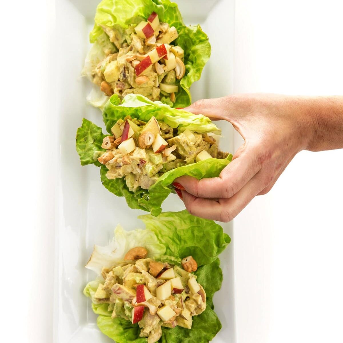 Whether you serve on lettuce wraps or a sandwich, this curried chicken salad goes great with Baked Turnip Chips, Fried Pickle Chips, or Vegan Roasted Tomato Soup.