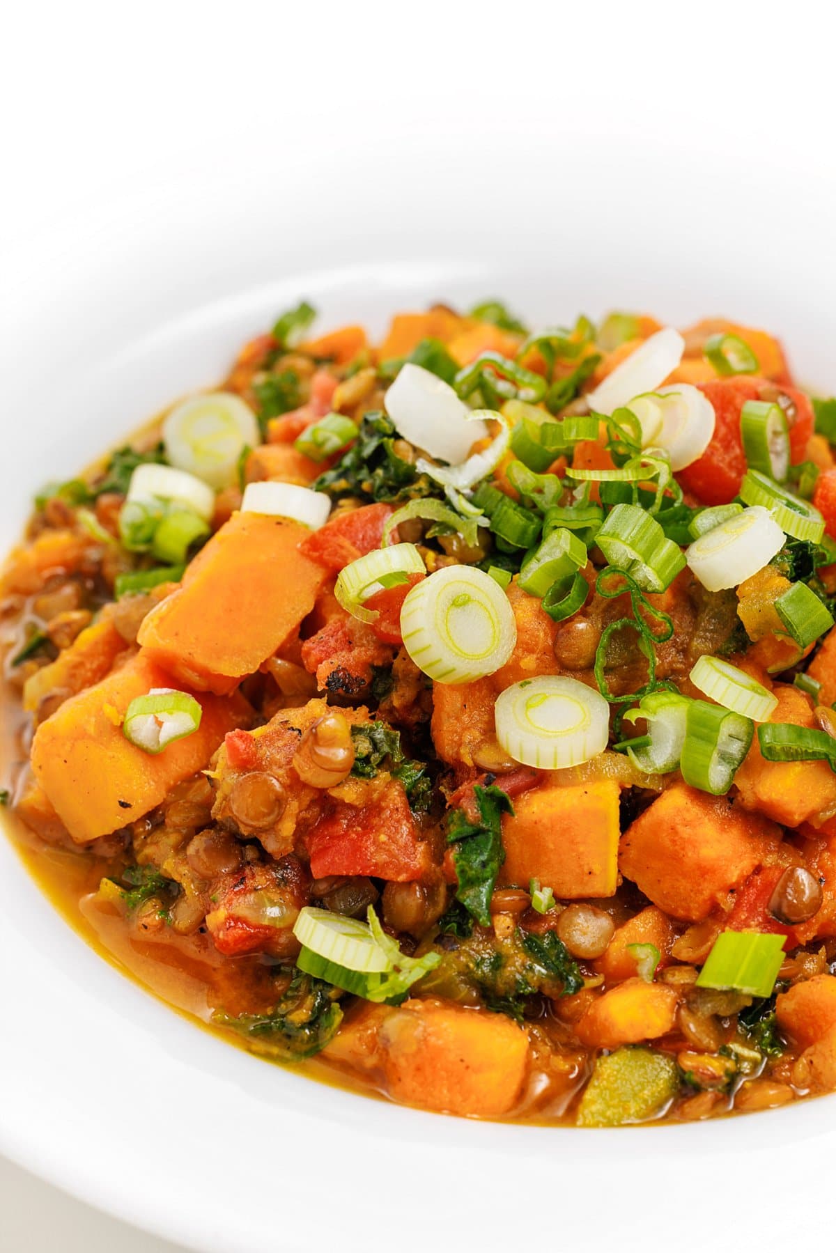Curried Lentils with Sweet Potatoes is a vegetarian meal that is loaded with protein, fiber, and nutrients.