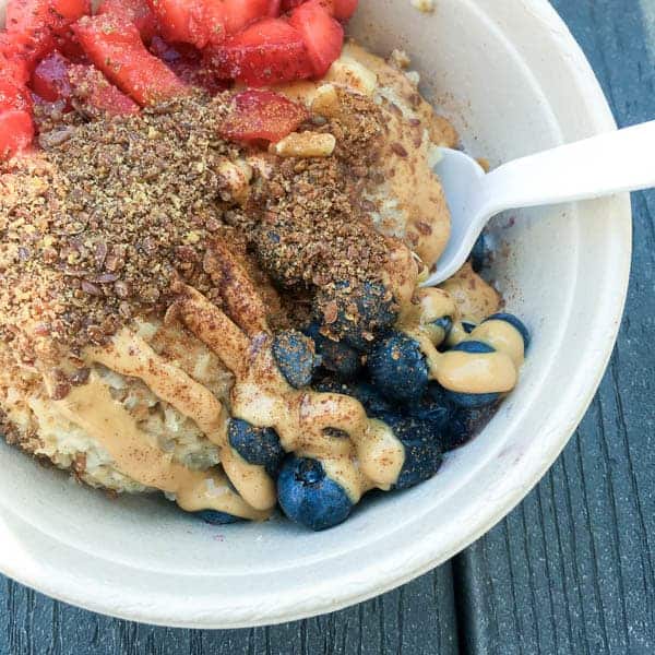 My bowl of choice? Oats with nut butter, berries and flaxseed – YUM! The perfect fuel for our workout at Red Rocks Amphitheater. (More on that in a bit!)