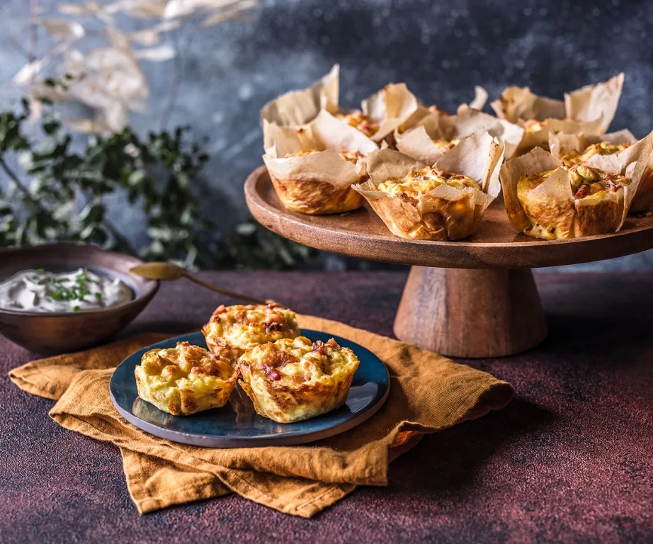 Craving an afternoon snack? Try these simple potato muffins. Mashed potatoes are combined with salty pieces of ham, savoury spices and flavoursome vegetable stock to create a satisfying treat.