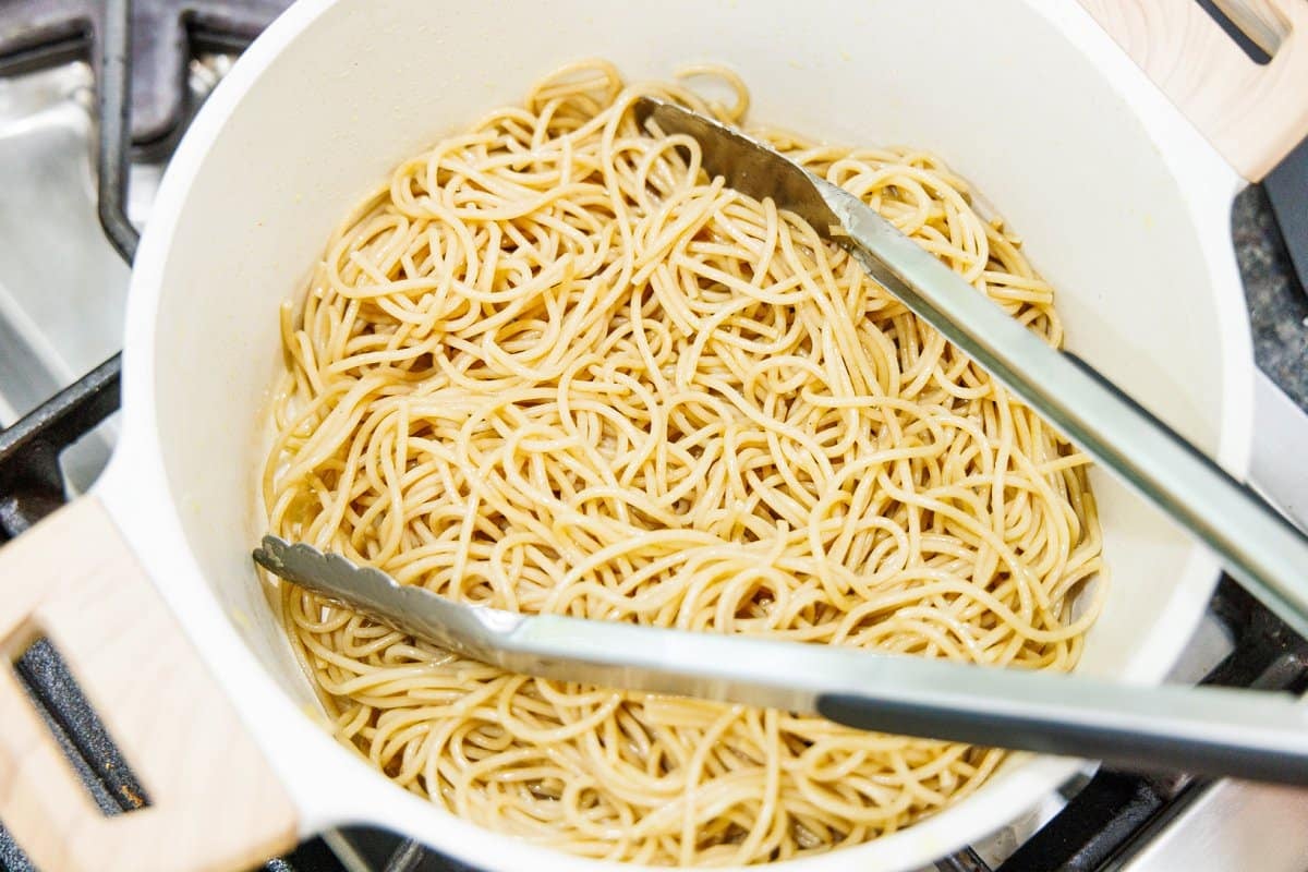 - Spaghetti: I used a box of whole wheat, thin spaghetti since that’s what I had on hand, but you could use any pasta!