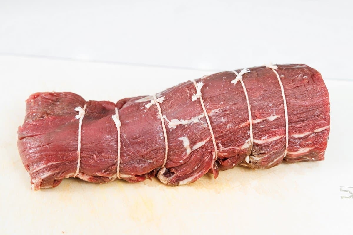 Step 3. Let your tenderloin sit and come to room temperature. Then pat dry, trim, and wrap in kitchen twine.