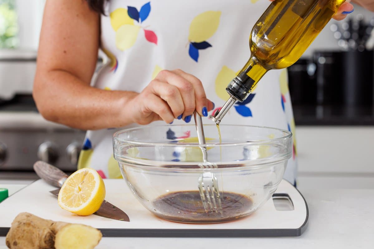 - Olive oil: Extra virgin olive oil, regular, or even avocado oil helps to thicken and add volume to the marinade.