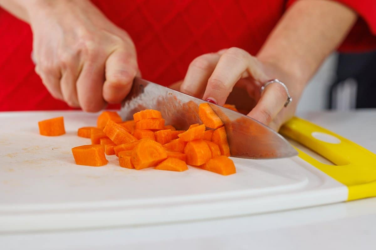 The next day, cut and prepare you produce including the carrots, onion, and celery.