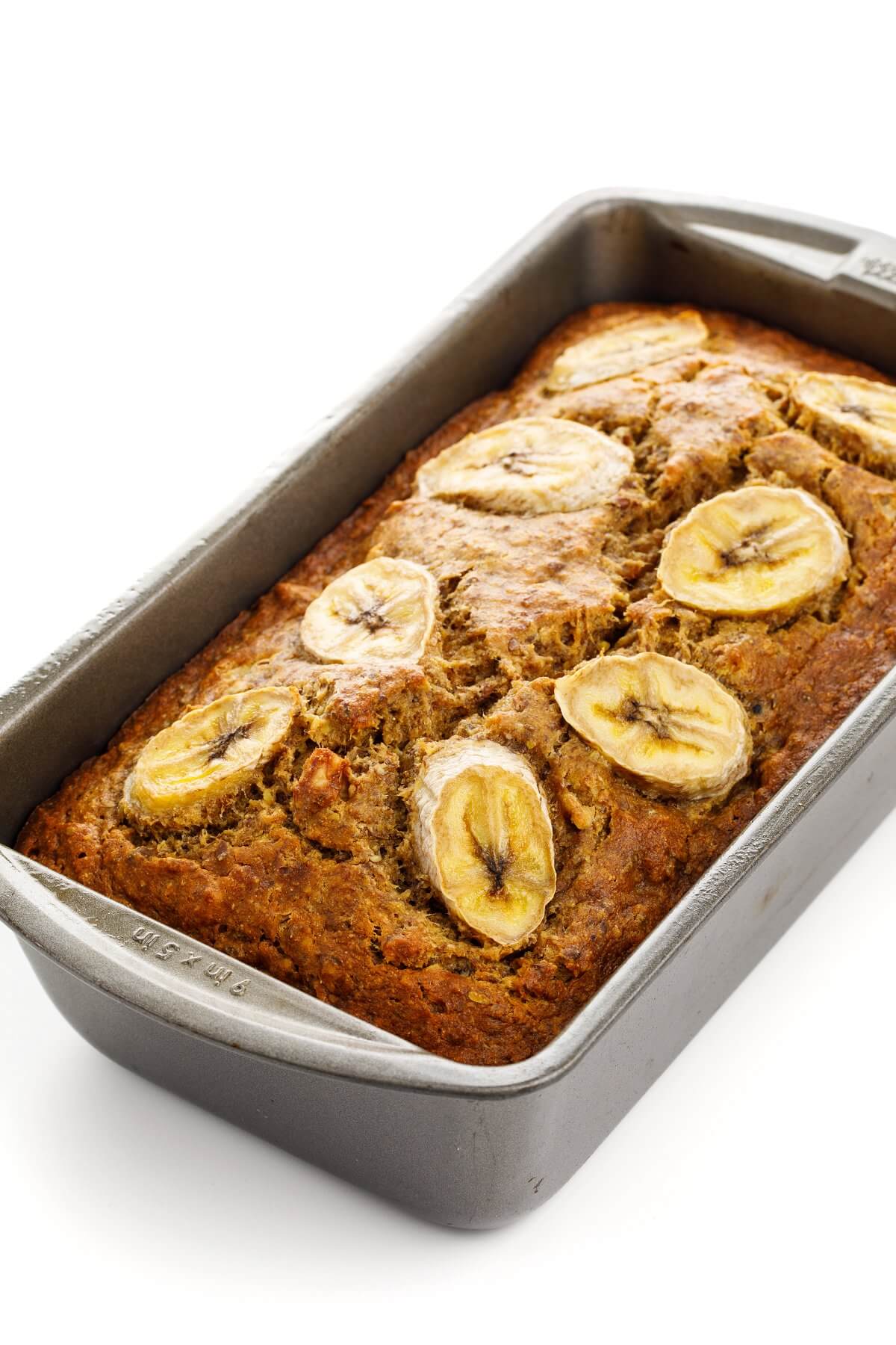 Whenever I bake from scratch, I like to find ways to boost the overall nutrition of the baked good. Whether it’s a blueberry yogurt bread, strawberry oatmeal muffins or chocolate chip zucchini bread, I love finding ways to make baked goods more nutritious. As such, I’m going to share a few simple steps I take to create a healthy banana bread recipe that is still perfectly moist and delicious.