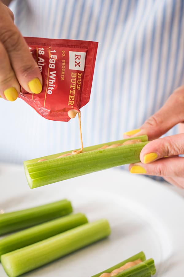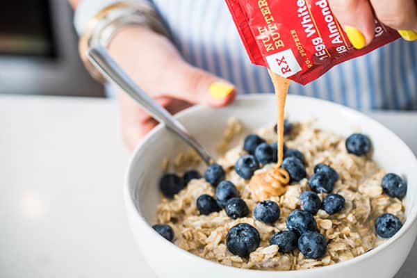 Speaking of breakfast, why should maple syrup have all the fun on your morning stack of pancakes? I love maple syrup as much as the next gal but it’s nothing but empty calories. The runny consistency of RX Nut Butter is ideal for pouring over pancakes and it’s a great way to boost the nutrition of your short stack.
