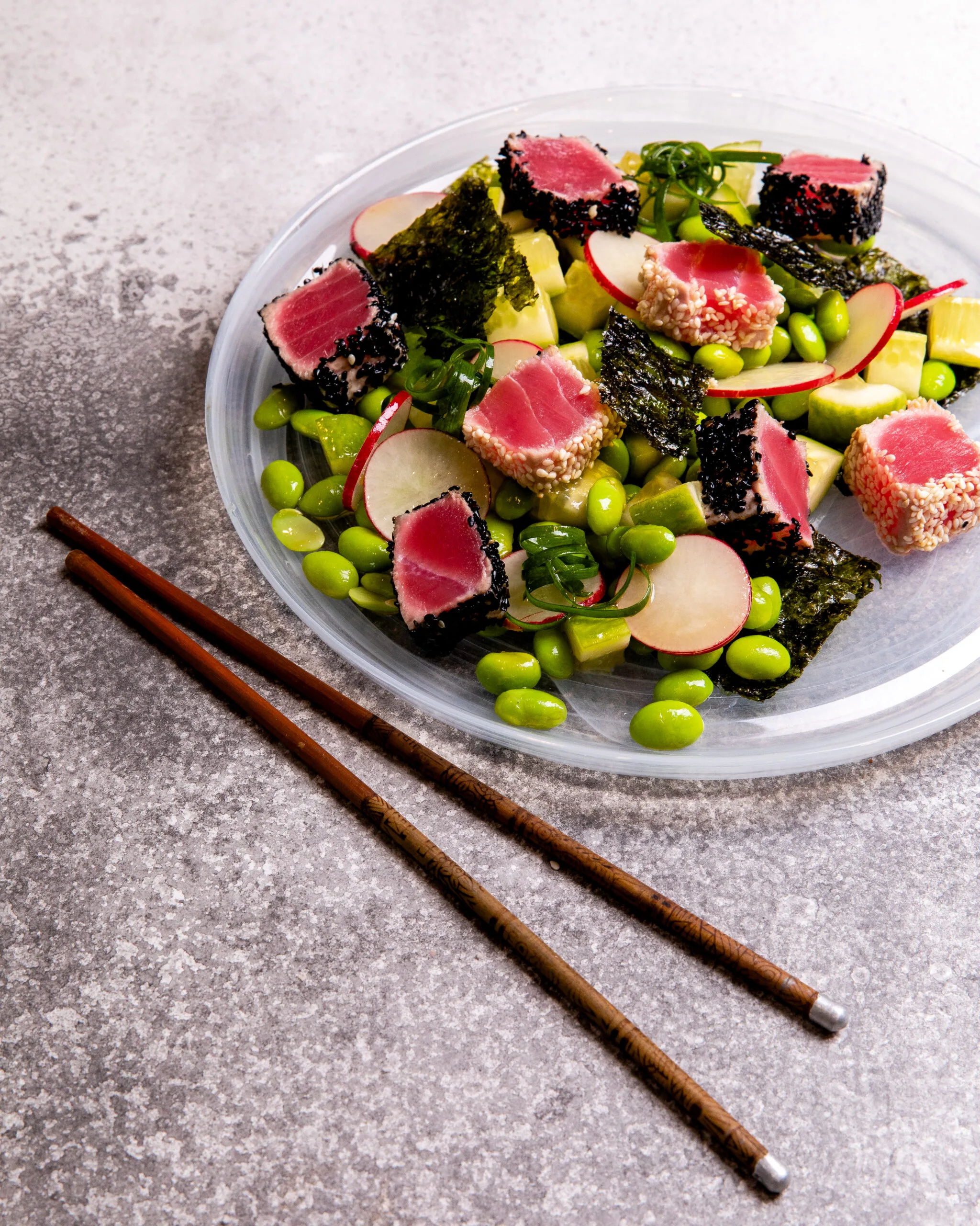 Tossed in a zesty lime, tamari and Azalea Grapeseed Oil dressing, this fresh seafood salad hits all the right lunchtime notes: healthy, easy-to-make and downright delicious.