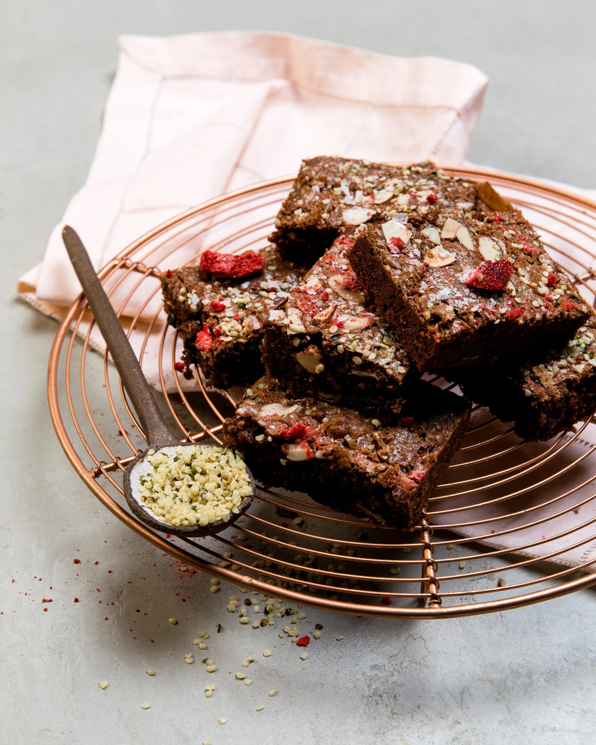 Loaded up with superfood goodness (hemp seeds, cacao nibs, goji berries, flaked almonds), these dark chocolate brownies make a perfect guilt-free snack for chocolate lovers. Made with Azalea Grapeseed Oil, they have a deliciously fluffy texture.
