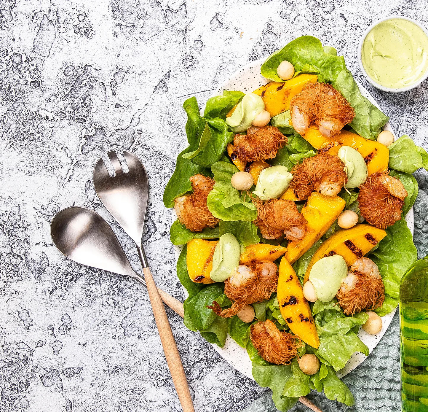 Thick slices of grilled mango and fresh avocado take this crunchy prawn salad to incredible new levels. Coated in pastry and deep-fried using Azalea Grapeseed Oil, green prawns ensure this salad is as filling as it is scrumptious. Add macadamia nuts for added crunch.