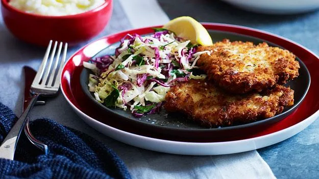 Crunchy lemon, garlic and thyme pork schnitzels are a world away from the cheap, thin, cardboard served up in some establishments. Serve with a winter slaw on the side for added crunch.
