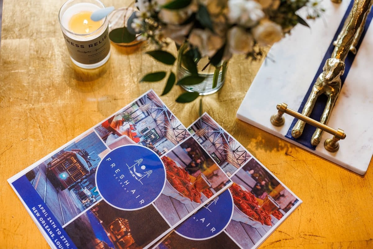 With my own charcuterie party being a part of our Fresh Air Retreat, my invitations doubled as an itinerary. But for any sort of formal gathering, you should try to get invitations out at least a month in advance! You want to make sure your potential guests don’t get double-booked with other activities or obligations. So make a fun invitation that matches your theme and get them out 4 weeks ahead of the party.