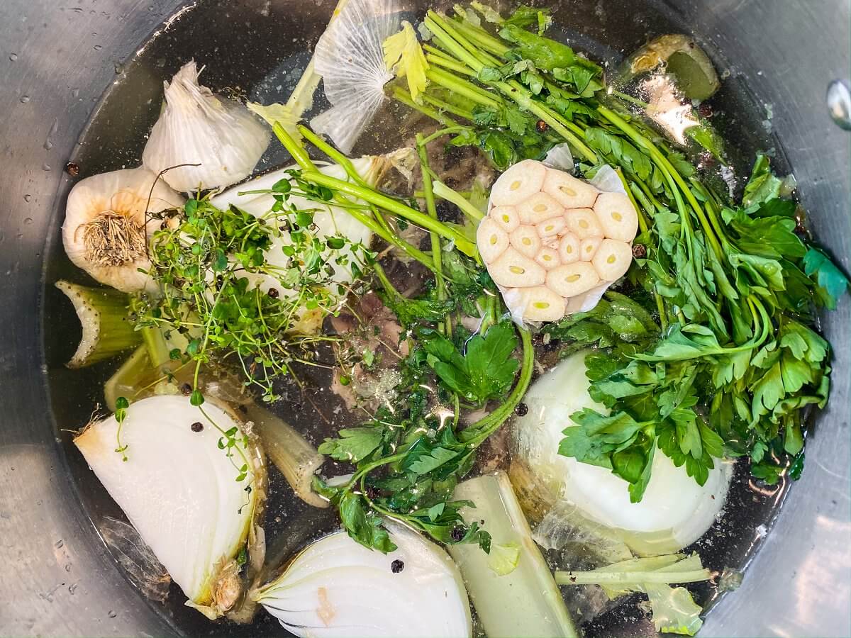 For aromatics, use whatever you have on hand such as parsley, dill, thyme, or even cilantro. Other great options include fresh ginger, lemon peel, and fennel bulb.