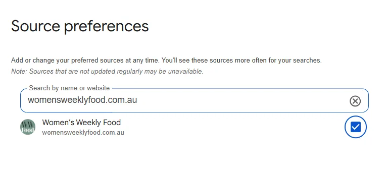 You can add Women’s Weekly Food as your preferred source here.