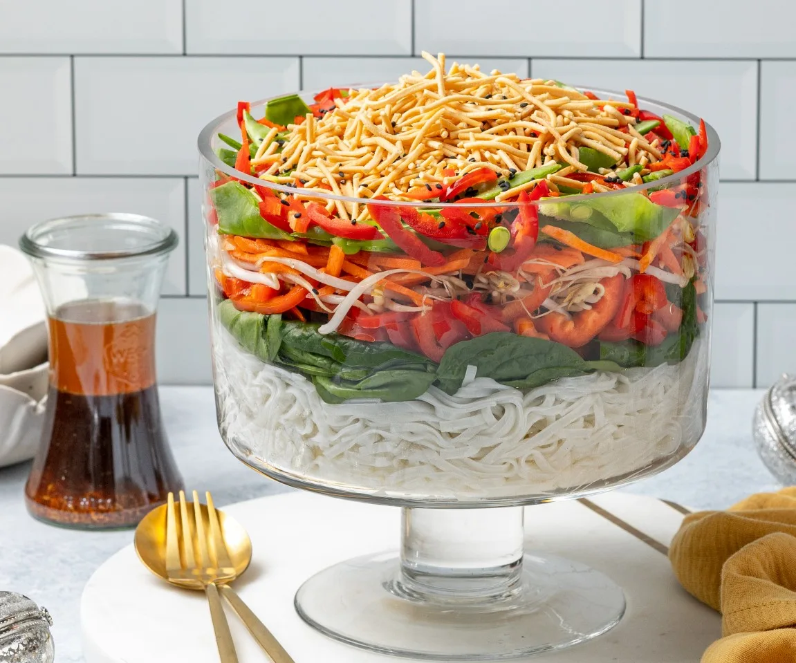 Looking for the ideal dish guaranteed to stand out at your next barbecue or picnic? We have the salad for you. This Asian Summer Noodle Salad is bright, vibrant and full of amazing texture and fresh flavours. Fresh snow peas and bean sprouts with crunchy fried noodles and a zingy Asian-inspired dressing.