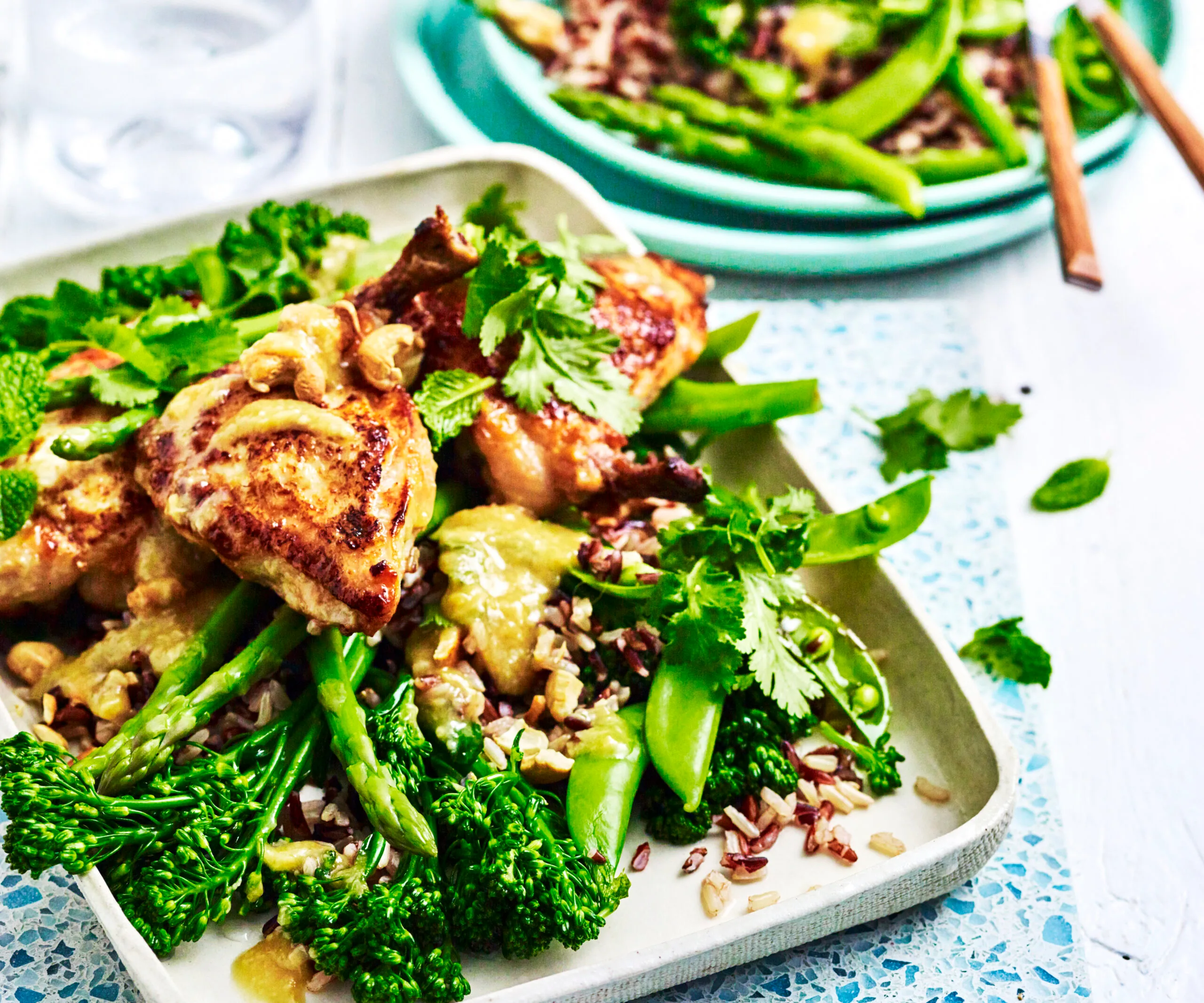 Miso chicken with broccolini and asparagus