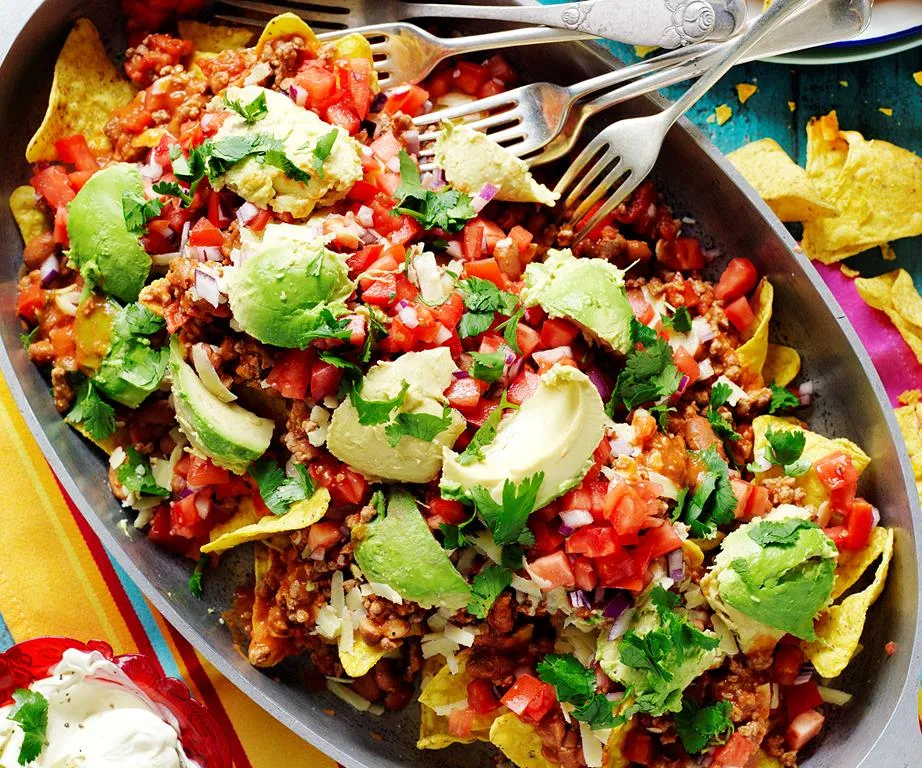 Take your taste-buds to Mexico with these cheesy lamb and bean nachos and zesty salsa fresca – easy to make and super delicious!