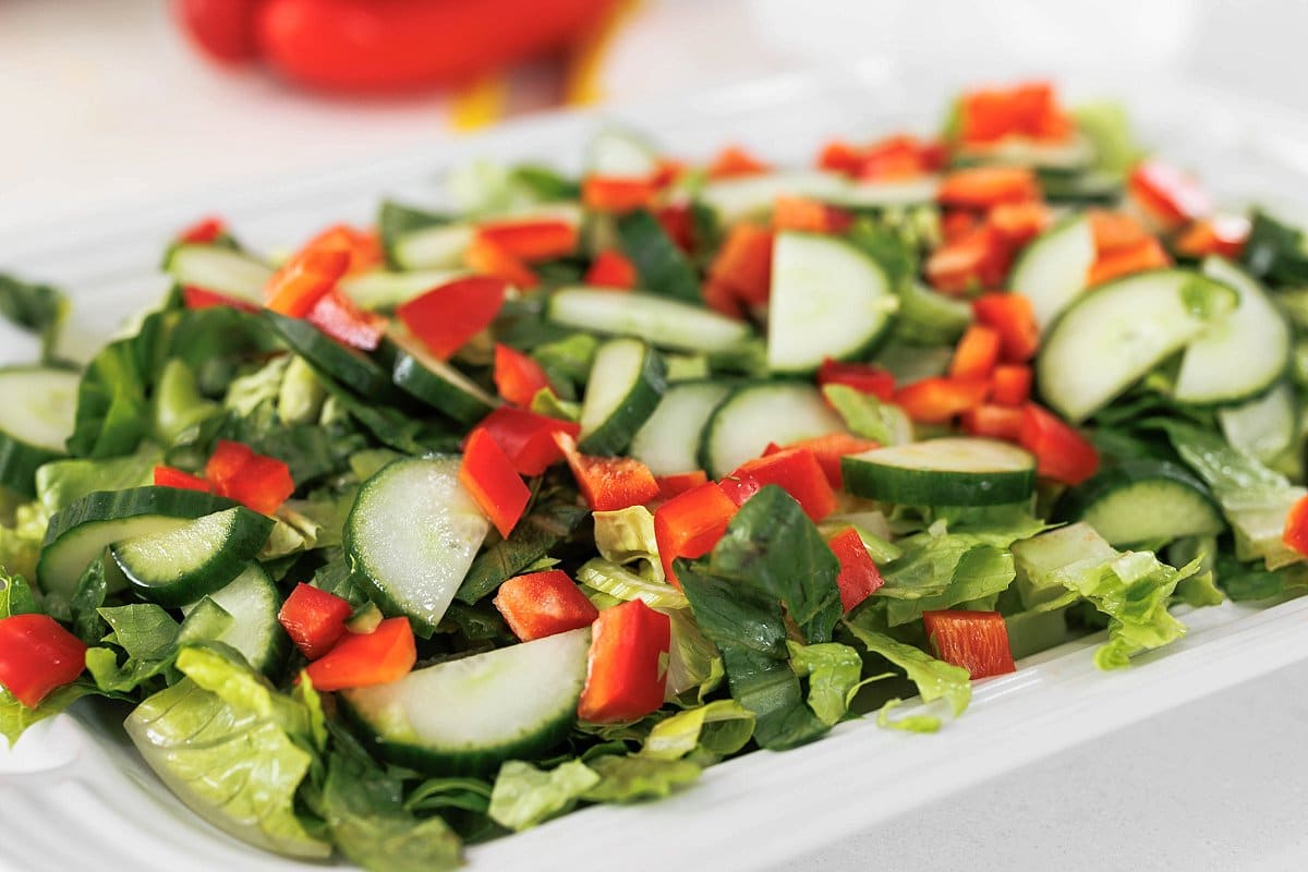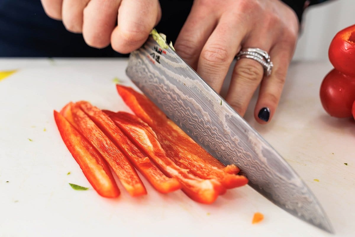 Then you’ll chop, slice, and dice all of the veggies to your desired size.