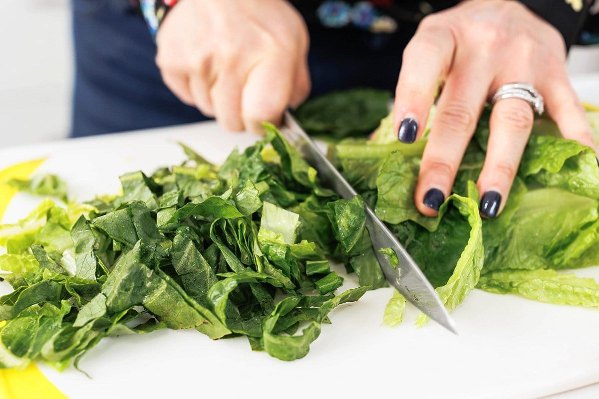 You’ll start your Italian Chopped Salad with Cannellini Beans by washing all of your produce.