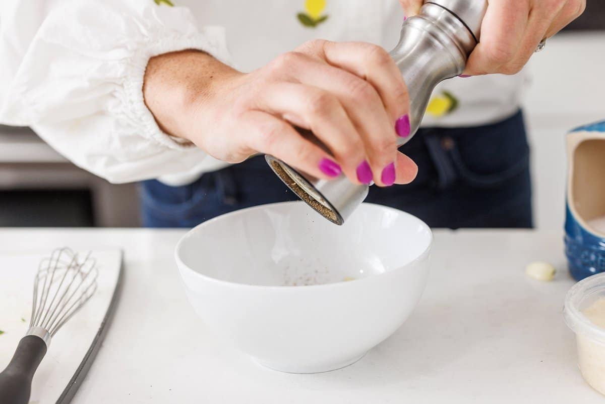 Finish off the dressing by seasoning with some salt and pepper to taste.