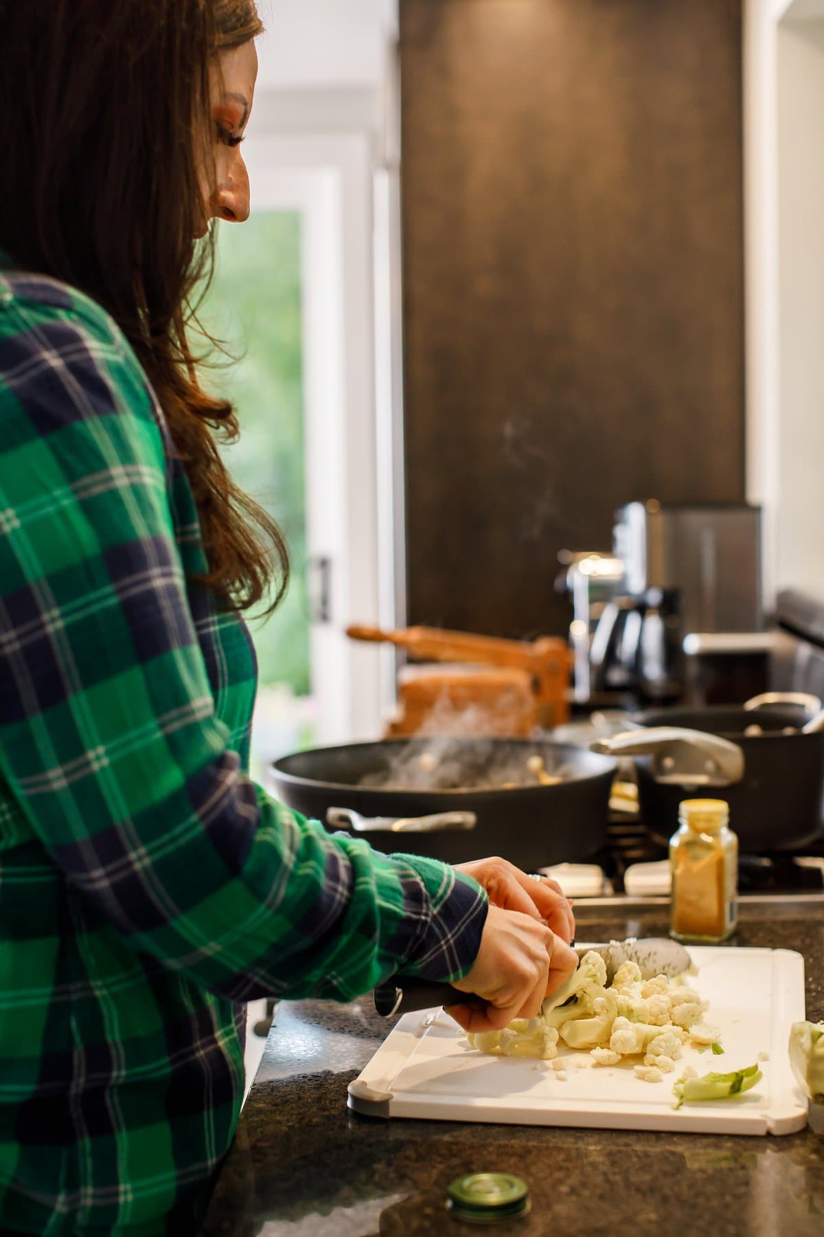 While not customary, I decided to bulk up the curry with additional veggies including cauliflower, potatoes, carrots and peas. Feel free to add in any veggies you have on hand. You can also omit the veggies entirely and keep it more traditional.