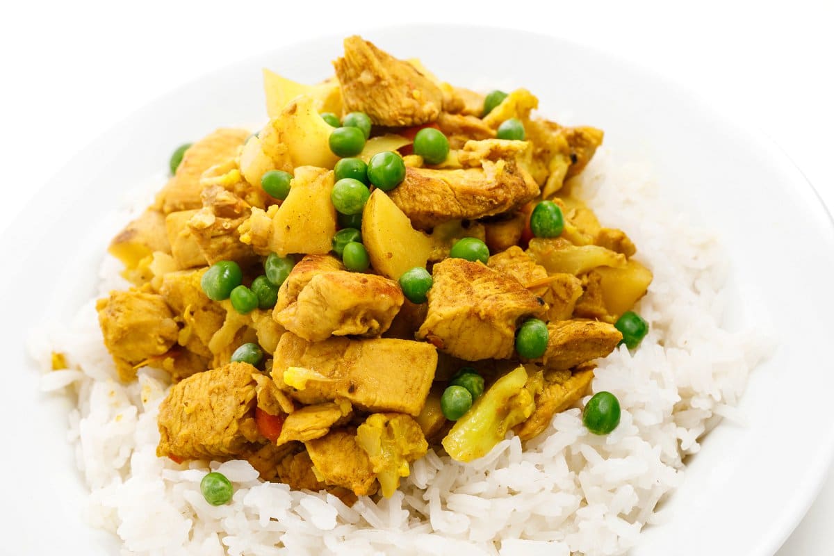 There are several similarities but Jamaican curry is typically made with curry powder whereas curry in Indian is usually sauce-based made with coconut milk or cream and blended with tomatoes, herbs, and spices.
