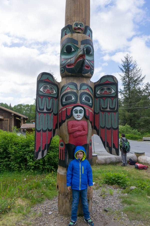 Before heading into the national forest, we made a pit stop at the Saxman Native Village to check out the totem poles. My five year old made me take a photo of him in front of each one to send to his preschool teacher explaining why he was missing class.