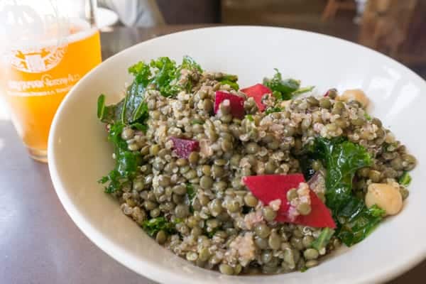 Not only do they have classic comfort dishes, burgers and pizza but they offer quite a few healthy dishes like this incredible lentil and kale salad I enjoyed with my hopping IPA. Balance, right?