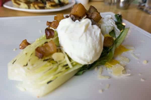 Since I tend to go savory at breakfast, I was immediately drawn the the grilled romaine with pancetta and a poached egg. The smoky romaine was the perfect compliment to the creamy yolk and salty pancetta.