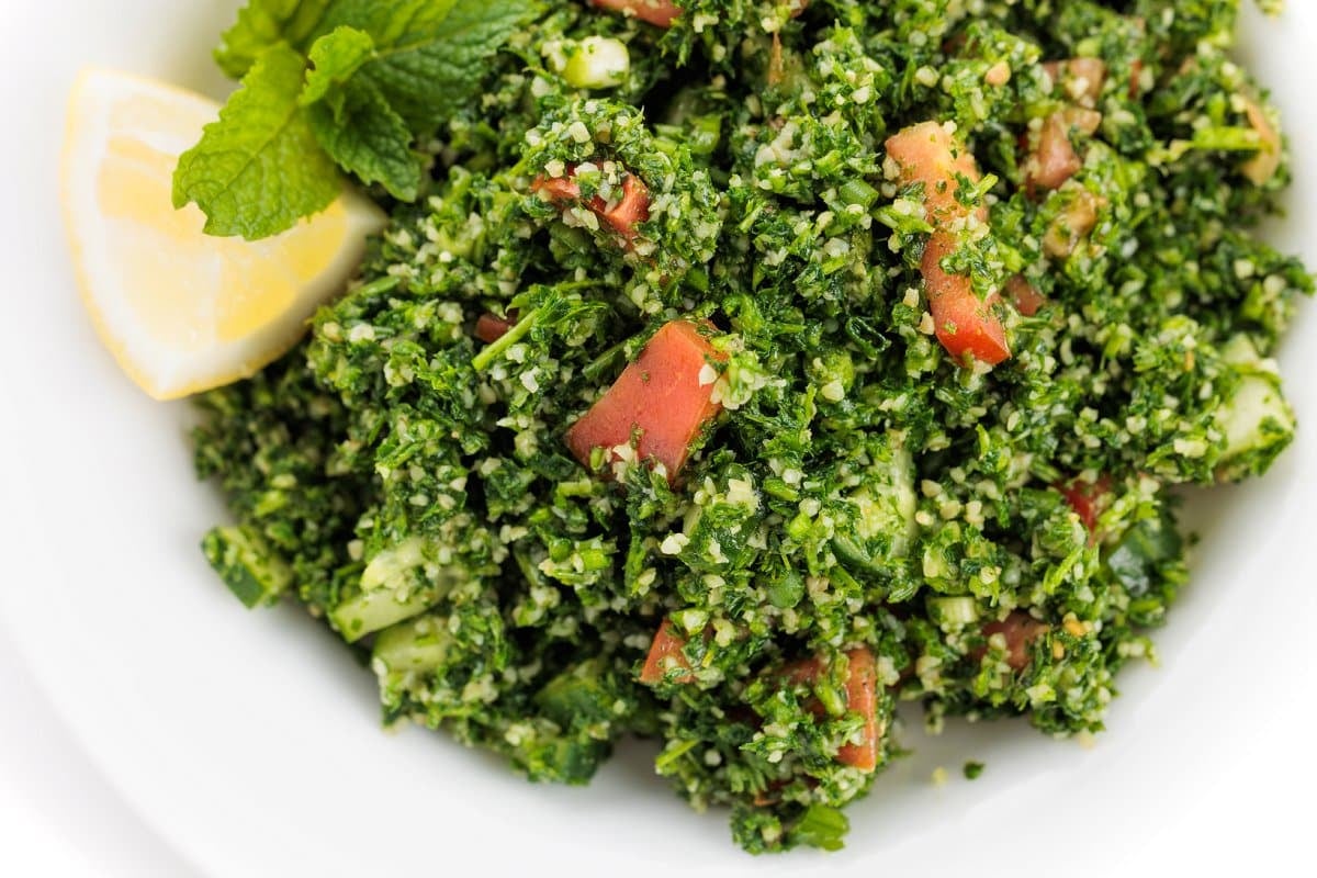 - Parsley: Earthy and peppery in flavor, it pairs great with the lemon dressing and veggies in the tabbouleh.