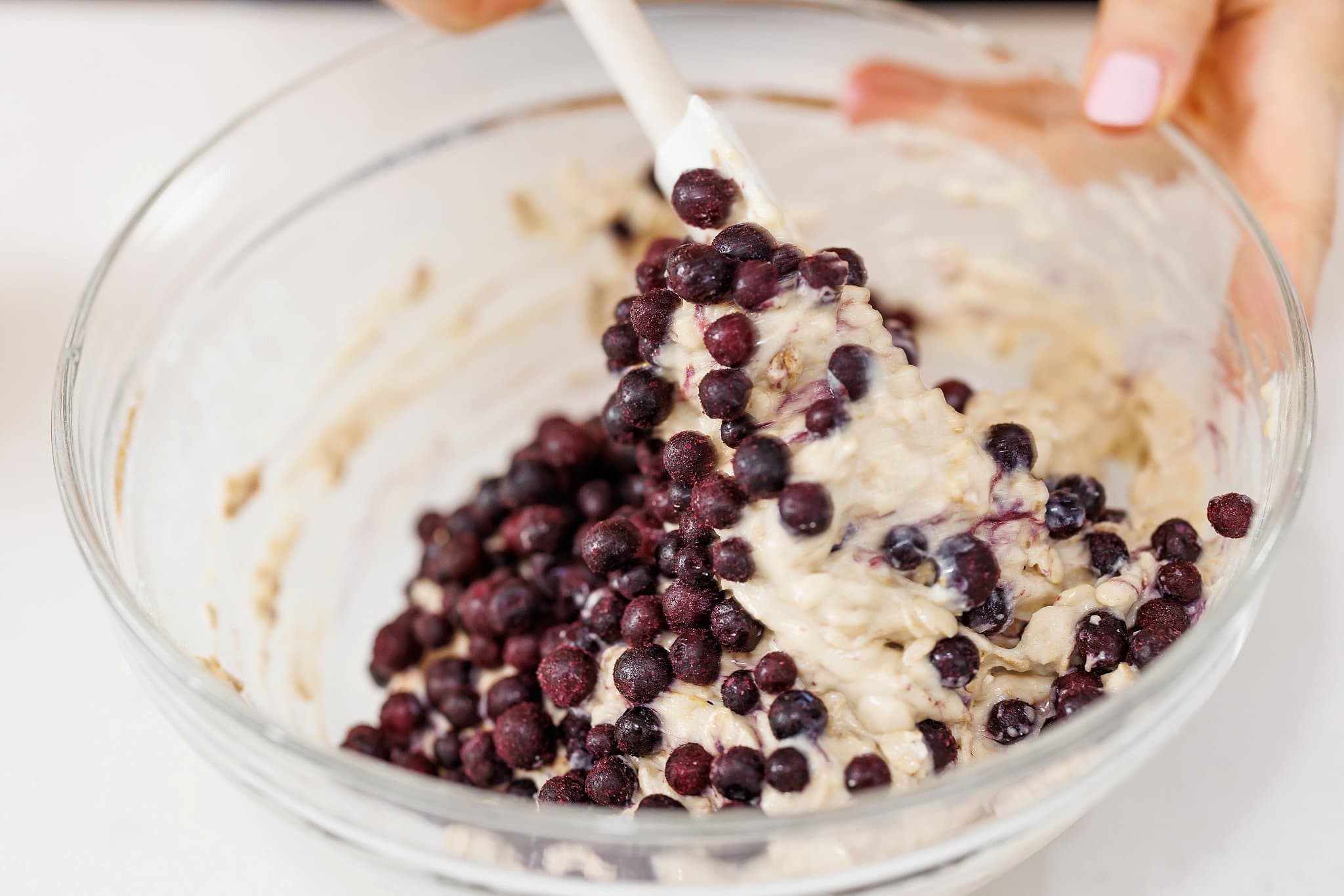 Last you’ll slowly mix in your blueberries. Be careful not to overmix your batter!